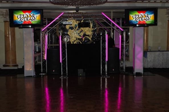 Professional Dj and Mc , two man show with a light truss , disco lights ,2 LCD screens and deluxe giveaways.